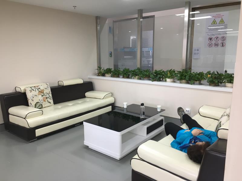 El due?o de una mascota se relaja en un sofá en un hospital de animales en Nanjing, provincia de Jiangsu. El hospital ofrece camas y sofás para que los propietarios se queden a pasar la noche para cuidar de sus mascotas. [Foto provista a chinadaily.com.cn]