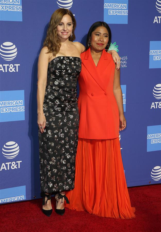 CALIFORNIA, enero 22, 2019 (Xinhua) -- Imagen proveída por ZUMAPRESS del 3 de enero de 2019 de las actrices mexicanas Marina de Tavira (i), y Yalitza Aparicio (d), posando en la Gala del 30 Festival Internacional de Cine de Palm Springs, en Palm Springs, California, Estados Unidos. La cinta dramática en blanco y negro "Roma" y la comedia histórica "La favorita" encabezan la competencia en la edición 91 de los Premios Oscar con 10 nominaciones cada una, anunció el martes la Academia de Artes y Ciencias cinematográficas. La cinta en espa?ol, recibió 10 nominaciones en total, incluyendo mejor película, mejor director para el cineasta mexicano Alfonso Cuarón, mejor actriz, mejor actriz de reparto, mejor película en lengua extranjera y mejor fotografía. (Xinhua/Faye Sadou/AdMedia/ZUMAPRESS)