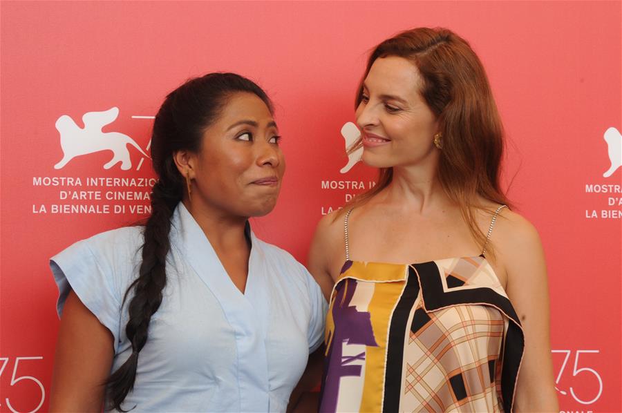 VENECIA, enero 22, 2019 (Xinhua) -- Imagen proveída por ZUMAPRESS del 30 de agosto de 2018 de las actrices mexicanas Marina de Tavira (d), y Yalitza Aparicio (i), posando durante la sesión fotográfica de la película "Roma" durante el 75 Festival Internacional de Cine de Venecia, en Venecia, Italia. La cinta dramática en blanco y negro "Roma" y la comedia histórica "La favorita" encabezan la competencia en la edición 91 de los Premios Oscar con 10 nominaciones cada una, anunció el martes la Academia de Artes y Ciencias cinematográficas. La cinta en espa?ol, recibió 10 nominaciones en total, incluyendo mejor película, mejor director para el cineasta mexicano Alfonso Cuarón, mejor actriz, mejor actriz de reparto, mejor película en lengua extranjera y mejor fotografía. (Xinhua/LaPresse/ZUMAPRESS)