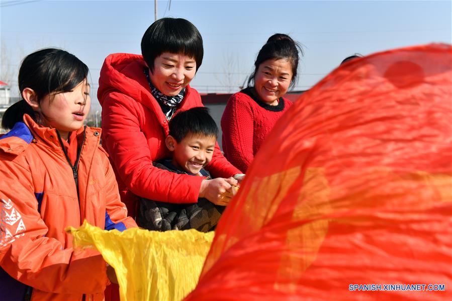 SHANDONG, enero 23, 2019 (Xinhua) -- Imagen del 16 de enero de 2019 de Xinxin (i) y Nuonuo (d) elaborando bolas de masa hervida con voluntarias, en la villa de Wucun de la ciudad de Linyi, provincia de Shandong, en el este de China. Las hermanas gemelas Gu Shengyuan y Gu Shengyan son miembros del grupo de servicio voluntario que ayuda a ni?os pobres y huérfanos que viven en las áreas monta?osas en Linyi. Fundado el 19 de abril de 2018, el grupo con más de 6,000 voluntarios proporciona apoyo para más de 3,500 ni?os pobres y huérfanos. (Xinhua/Guo Xulei)