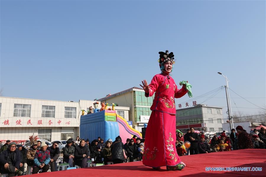 SHANDONG, enero 23, 2019 (Xinhua) -- Miembros de una compa?ía teatral realizan una presentación en el municipio de Honghua del condado de Tancheng, provincia de Shandong, en el este de China, el 23 de enero de 2019. Quince equipos voluntarios visitan las villas en el condado de Tancheng, llevando espectáculos y pergaminos del Festival de Primavera para dar la bienvenida al A?o Nuevo Lunar. (Xinhua/Zhang Chunlei)