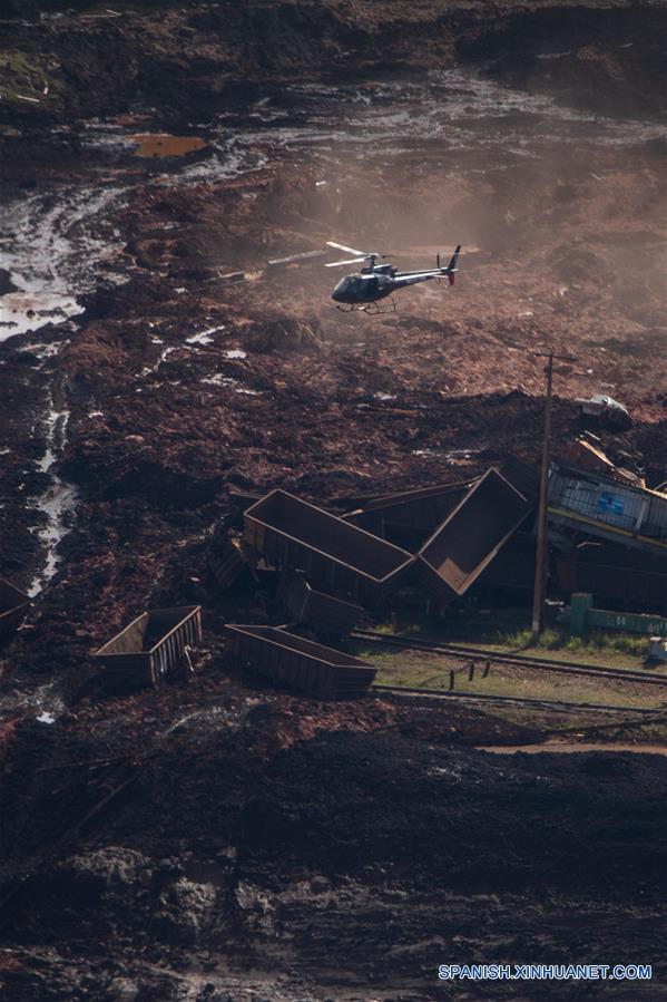 Imagen proveída por AGENCIA ESTADO de una vista aérea del lugar destruido por los residuos tras la ruptura de una represa de residuos de la minera brasile?a Vale, en Brumadinho, ciudad en la región metropolitana de Belo Horizonte, capital regional de Minas Gerais, Brasil, el 25 de enero de 2019. Al menos 200 desaparecidos y cuatro heridos es el saldo preliminar de la ruptura de una represa de residuos de la minera brasile?a Vale, la mayor exportadora de hierro del mundo, en la región metropolitana de Belo Horizonte, informó el viernes el cuartel general de Bomberos de la ciudad. (Xinhua/Moisés Solva/O TEMPO/AGENCIA ESTADO)