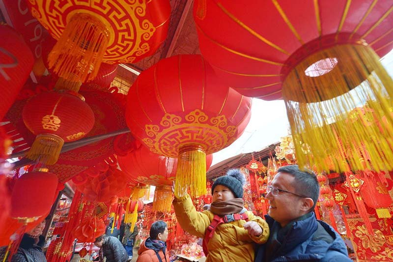 Decoraciones alegóricas al Festival de la Primavera en un mercado de Qingdao, provincia de Shandong, 26 de enero del 2019. El Festival de la Primavera, o a?o nuevo chino, se celebrará el próximo 5 de febrero. [Foto: Xinhua]