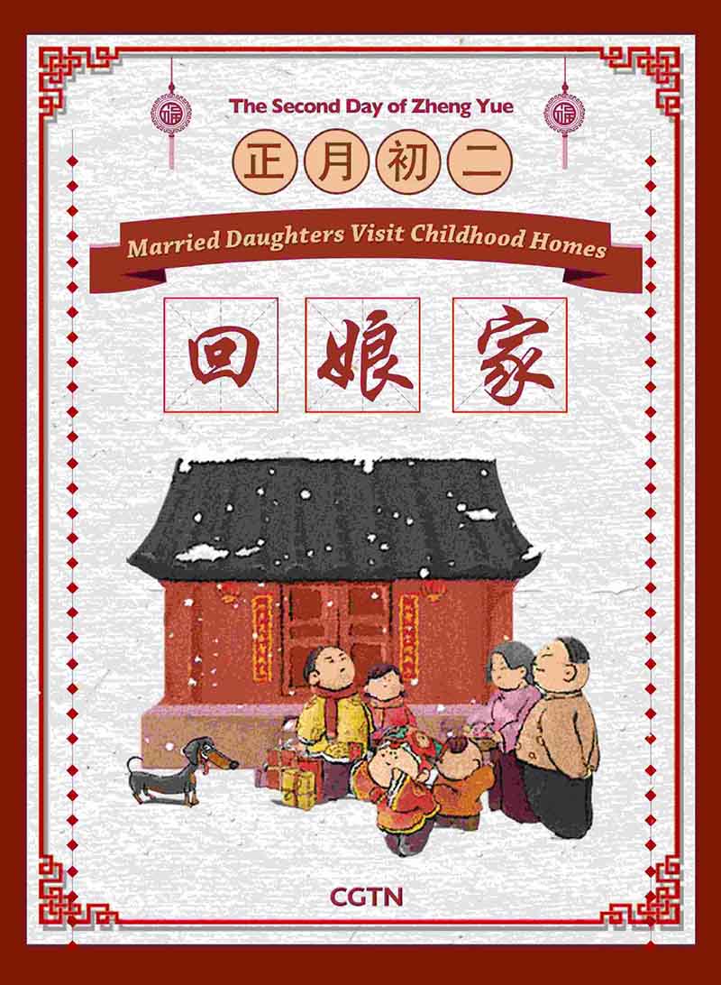 Como las hijas casadas tradicionalmente pasan la víspera del Festival de la Primavera con las familias de sus esposos, el segundo día del Zheng Yue les toca regresar a su hogar original y visitar a sus familiares.