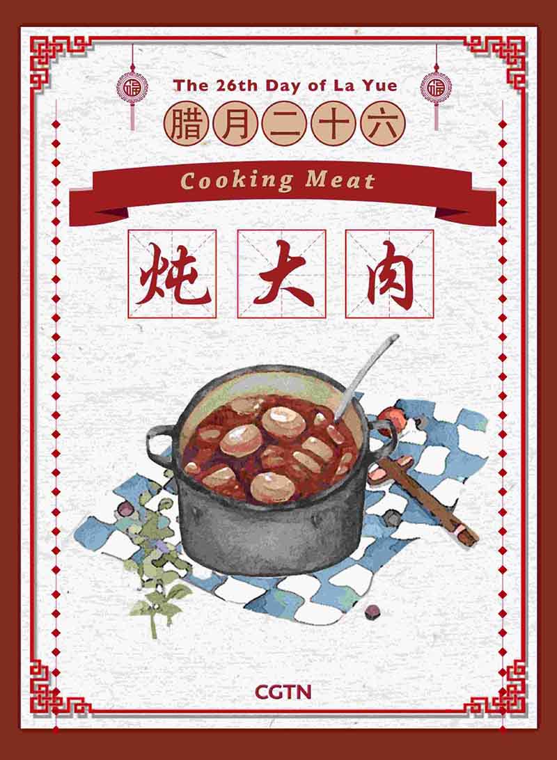Muchas familias comen cerdo y cocinan carne. Otras familias, que no crian cerdos, van al mercado local para comprar un trozo de carne. En la sociedad agraria del pasado, las personas apenas tienen la oportunidad de consumir carne, a excepción del Festival de la Primavera. Es por ello por lo que comer carne también representa la celebración más grande del a?o.