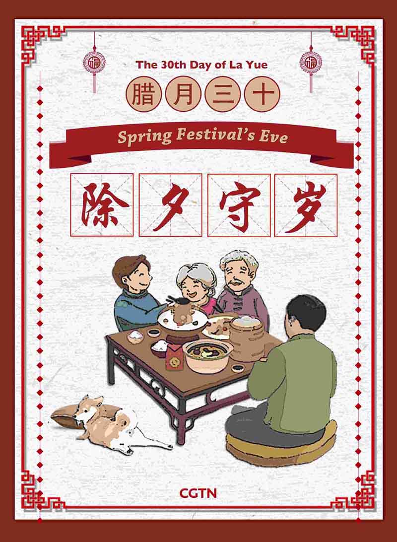 Finalmente, llega la víspera del Festival de la Primavera. Este día es considerado como el día más importante del a?o para la reunión familiar. Los miembros que trabajan o estudian fuera del terru?o, regresan a casa para celebrar el Festival de la Primavera junto a la familia.