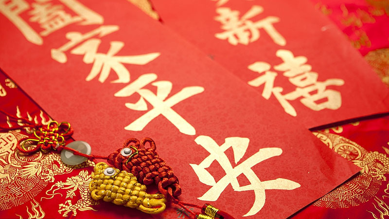Un pareado con palabras auspiciosas para el Festival de la Primavera. [Foto: CGTN]