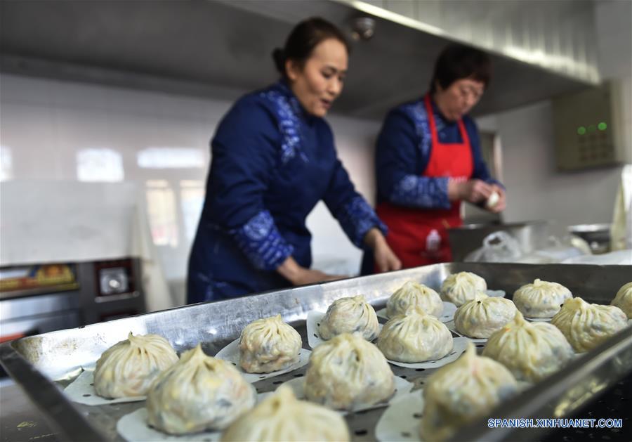 Empleadas preparan bollos rellenos al vapor con envoltura muy fina durante una feria en el Museo del Palacio, en Beijing, capital de China, el 28 de enero de 2019. Cerca de 150 marcas chinas consagradas, seleccionas por algunas provincias y municipalidades chinas, son exhibidas en una feria en el Museo del Palacio durante el Festival de Primavera. La feria se lleva a cabo para presentar al público las tradiciones de la realeza para celebrar el Festival de Primavera durante la Dinastía Qing. (Xinhua/Dong Naide)