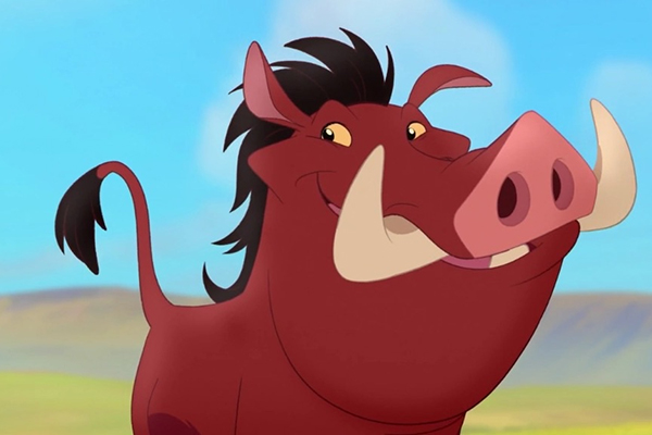 El jabalíes un personaje muy encantador en la película animada de Disney "El rey león". Su nombre "Pumbaa" deriva del swahili, una lengua del este de áfrica. él y Timon, un suricato son amigos inseparables.