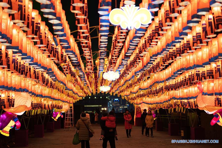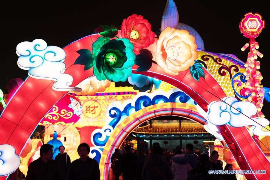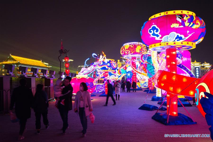 SHAANXI, enero 30, 2019 (Xinhua) -- Imagen del 29 de enero de 2019 de una vista de las linternas durante un espectáculo de luz en Xi'an, capital de la provincia de Shaanxi, en el noroeste de China. Xi'an es decorado con hermosas luces en celebración del próximo Festival de Primavera, que se celebra el 5 de febrero este a?o. (Xinhua/Zhao Zhao)