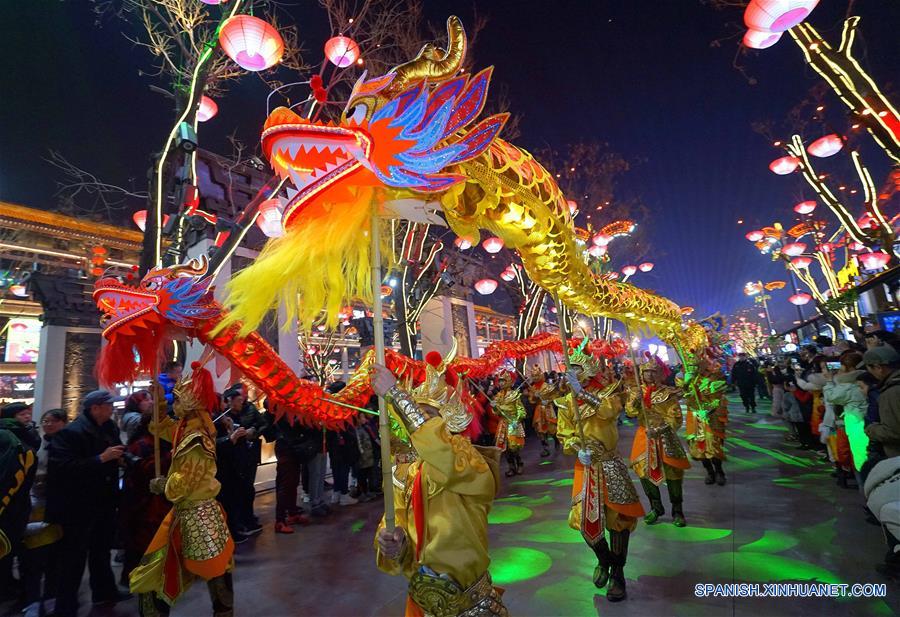 SHAANXI, enero 30, 2019 (Xinhua) -- Imagen del 29 de enero de 2019 de un desfile siendo llevado a cabo en Xi'an, capital de la provincia de Shaanxi, en el noroeste de China. Xi'an es decorado con hermosas luces en celebración del próximo Festival de Primavera, que se celebra el 5 de febrero este a?o. (Xinhua/Jia Jiping)