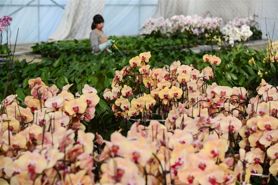 HEBEI, enero 31, 2019 (Xinhua) -- Una residente cuida de las flores en un invernadero, en la villa de Xindian del municipio de Luojiatun en el condado de Qianxi, provincia de Hebei, en el norte de China, el 31 de enero de 2019. Las personas en Shijiazhuang están ocupadas comprando flores para decorar sus hogares como una forma de dar la bienvenida al próximo Festival de Primavera, que se celebra el 5 de febrero este a?o. (Xinhua/Li Shaohua)
