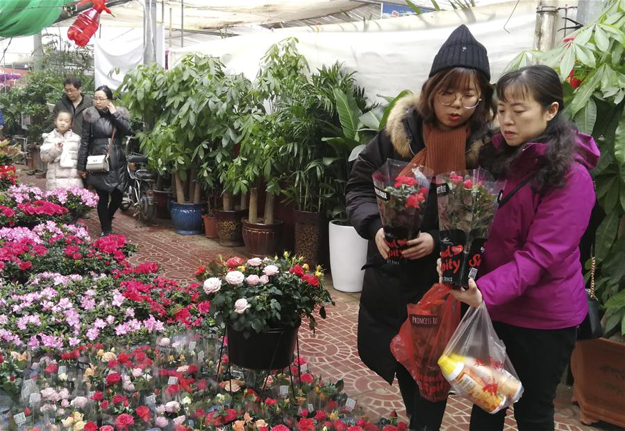 HEBEI, enero 31, 2019 (Xinhua) -- Clientes seleccionan flores en un mercado de flores, en Shijiazhuang, capital de la provincia de Hebei, en el norte de China, el 31 de enero de 2019. Las personas en Shijiazhuang están ocupadas comprando flores para decorar sus hogares como una forma de dar la bienvenida al próximo Festival de Primavera, que se celebra el 5 de febrero este a?o. (Xinhua/Wang Baolong)