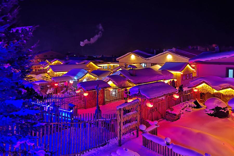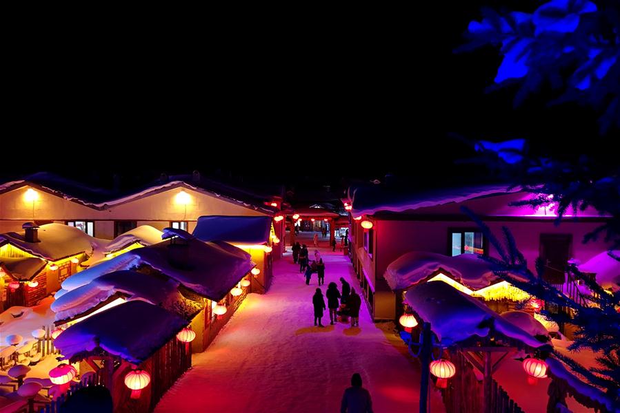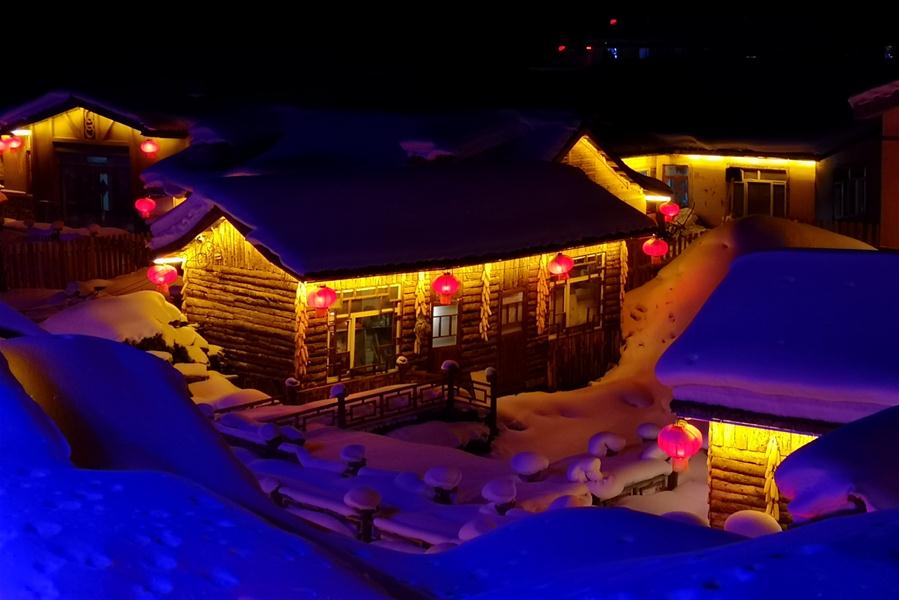 HEILONGJIANG, enero 31, 2019 (Xinhua) -- Imagen del 30 de enero de 2019 tomada con un teléfono móvil de una vista nocturna de la Granja Forestal Shuangfeng, en la ciudad de Mudanjiang, provincia de Heilongjiang, en el noreste de China. La Granja Forestal Shuangfeng atestigua nevadas frecuentes y es cubierta por la nieve la mayor parte del a?o. El bello paisaje nevado atrae a muchos turistas locales y extranjeros cada a?o. (Xinhua/Yang Siqi)