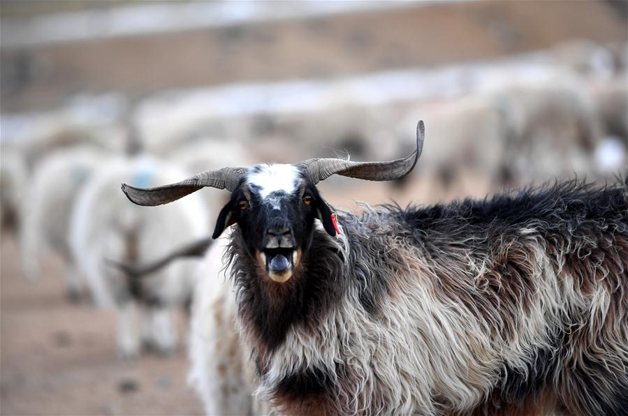 LHASA, enero 31, 2019 (Xinhua) -- Imagen del 17 de enero de 2019 de una oveja permaneciendo en un sitio de reasentamiento de pastores en el condado de Bange, en la Región Autónoma del Tíbet, en el suroeste de China. En el pasado, los pastores en el Tíbet soportaron un largo y frío invierno de octubre a finales de junio, antes de trasladarse a la pradera de verano. No tenían residencia fija y migraron cuando las estaciones cambiaron, llevando sus tiendas de campa?a, utensilios de cocina y otros artículos de primera necesidad a caballo. Hoy en día, la mayoría de los pastores se benefician del programa de reasentamiento. Ellos se despidieron de sus chozas de invierno y se mudaron a casas de estilo tibetano de ladrillo y mortero. (Xinhua/Chogo)
