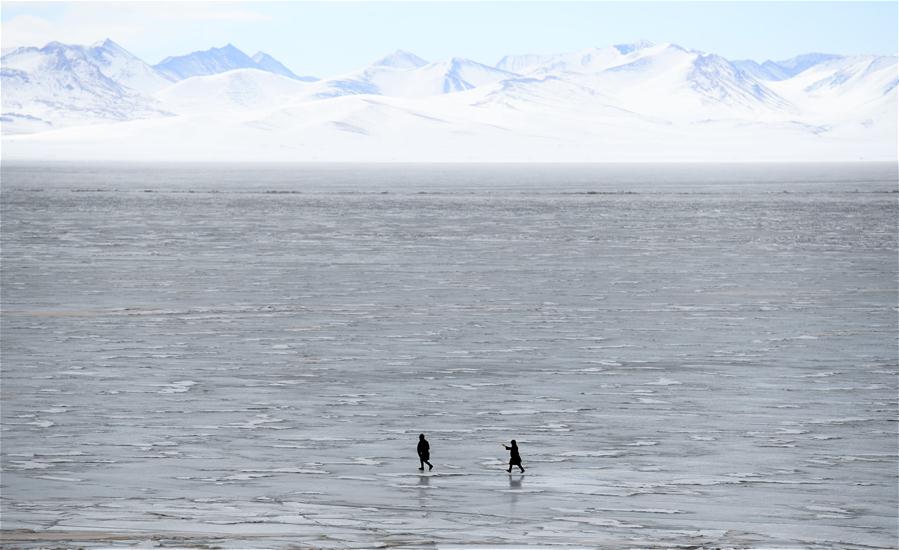 LHASA, enero 31, 2019 (Xinhua) -- Imagen del 18 de enero de 2019 de una vista del congelado Lago Namsto, en la Región Autónoma del Tíbet, en el suroeste de China. En el pasado, los pastores en el Tíbet soportaron un largo y frío invierno de octubre a finales de junio, antes de trasladarse a la pradera de verano. No tenían residencia fija y migraron cuando las estaciones cambiaron, llevando sus tiendas de campa?a, utensilios de cocina y otros artículos de primera necesidad a caballo. Hoy en día, la mayoría de los pastores se benefician del programa de reasentamiento. Ellos se despidieron de sus chozas de invierno y se mudaron a casas de estilo tibetano de ladrillo y mortero. (Xinhua/Purbu Zhaxi)