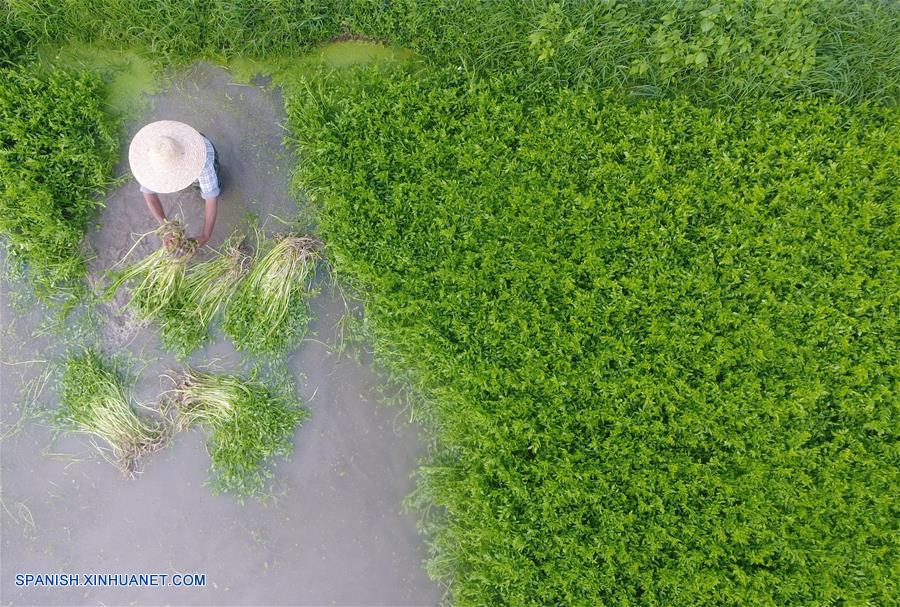 HAINAN, febrero 1, 2019 (Xinhua) -- Un agricultor cosecha apio en la villa de Qiaotou del municipio de Jiaji en la ciudad de Qionghai, provincia de Hainan, en el sur de China, el 1 de febrero de 2019. Los agricultores de la villa de Qiaotou están ocupados cosechando apio para satisfacer la demanda de los clientes mientras el Festival de Primavera se aproxima. El Festival de Primavera, o el A?o Nuevo Lunar chino, cae el 5 de febrero este a?o. (Xinhua/Meng Zhongde)