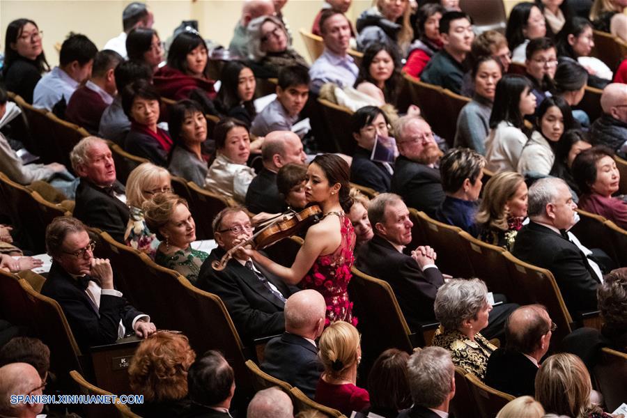 NUEVA YORK, febrero 7, 2019 (Xinhua) -- Imagen del 6 de febrero de 2019 de la violinista Bomsori Kim (c) realizando una actuación durante el 8 Concierto del A?o Nuevo Chino por la Orquesta Filarmónica de Nueva York, en el Lincoln Center en Nueva York, Estados Unidos. El Concierto del A?o Nuevo Chino por la Orquesta Filarmónica de Nueva York fue llevado a cabo el miércoles para celebrar el A?o del Cerdo. (Xinhua/Wang Ying)