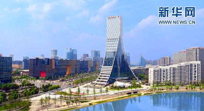 La gente posa junto a la escultura de un panda de 15 metros de altura en el edificio de la Plaza de Finanzas Internacionales en Chengdu, provincia de Sichuan, el 2 de octubre de 2019. [Foto / IC]