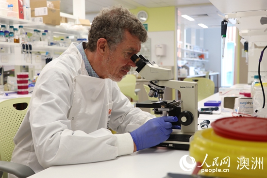 El profesor Ian Fraser está haciendo un experimento en el laboratorio (Pueblo en Línea / Li Yanyun)