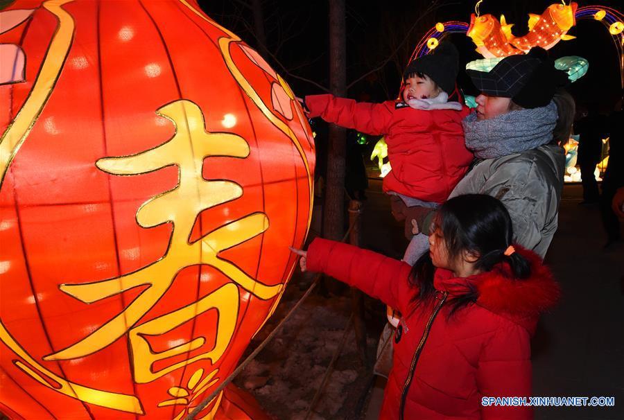 Imagen del 7 de febrero de 2019 de turistas observando linternas en un jardín botánico del punto escénico de Nangong, en Beijing, capital de China. Los ingresos turísticos nacionales de China se incrementaron 513,900 millones de yuanes (cerca de 76,210 millones de dólares estadounidenses) durante las vacaciones de la semana de la Fiesta de la Primavera que concluye este domingo, un incremento anual de 8.2 por ciento, dijo el Ministerio de Cultura y Turismo. Durante las vacaciones se hicieron 415 millones de viajes en todo el país, un aumento de 7.6 por ciento interanual, indicó el ministerio. (Xinhua/Ren Chao)