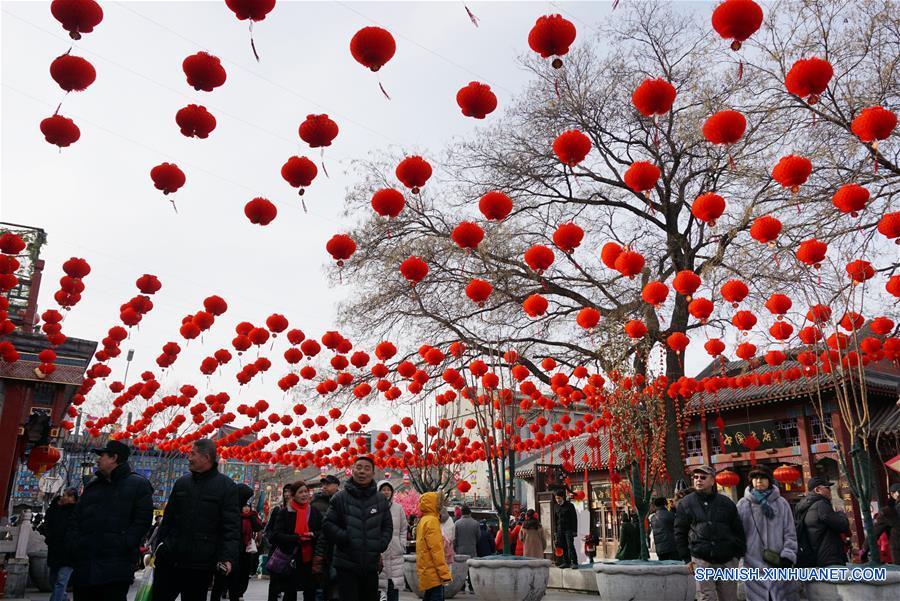 Imagen del 7 de febrero de 2019 de personas visitando una feria del templo en Beijing, capital de China. Los ingresos turísticos nacionales de China se incrementaron 513,900 millones de yuanes (cerca de 76,210 millones de dólares estadounidenses) durante las vacaciones de la semana de la Fiesta de la Primavera que concluye este domingo, un incremento anual de 8.2 por ciento, dijo el Ministerio de Cultura y Turismo. Durante las vacaciones se hicieron 415 millones de viajes en todo el país, un aumento de 7.6 por ciento interanual, indicó el ministerio. (Xinhua/Ren Pengfei)