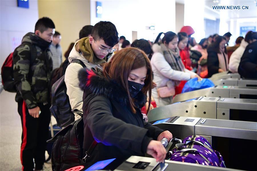 Los pasajeros entran en la estación de tren de Zhengzhou Este, provincia central china de Henan, el 10 de febrero de 2019. (Xinhua/Feng Dapeng)