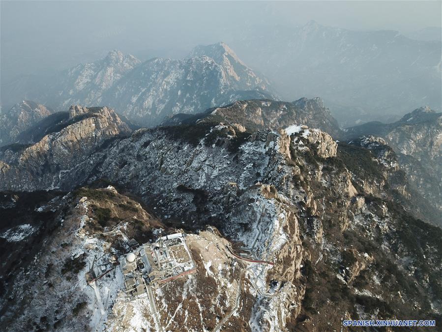 SHANDONG, febrero 12, 2019 (Xinhua) -- Imagen del 11 de febrero de 2019 de una vista del paisaje nevado del pico de la Monta?a Taishan, "Pico del Emperador de Jade", en la ciudad de Tai'an, provincia de Shandong, en el este de China. (Xinhua/Wang Nan)