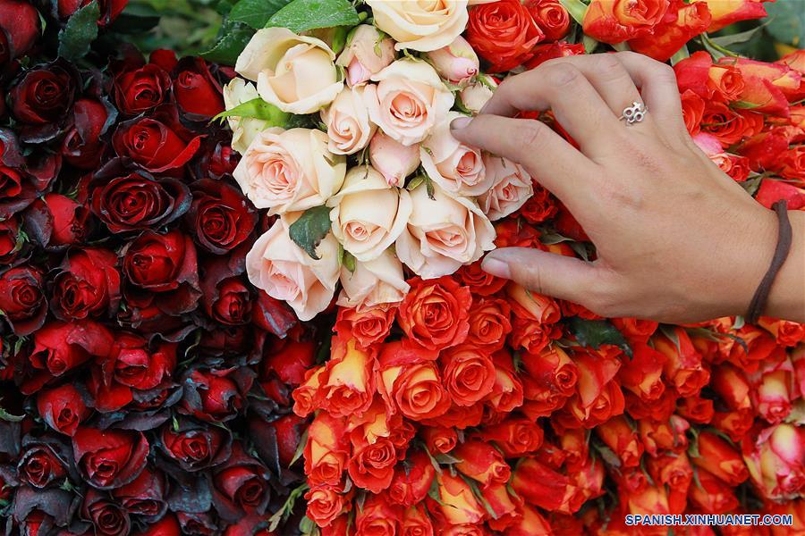 MANILA, febrero 12, 2019 (Xinhua) -- Una comerciante arregla las flores para el próximo Día de San Valentín en una calle de florerías, en Manila, Filipinas, el 12 de febrero de 2019. (Xinhua/Rouelle Umali)