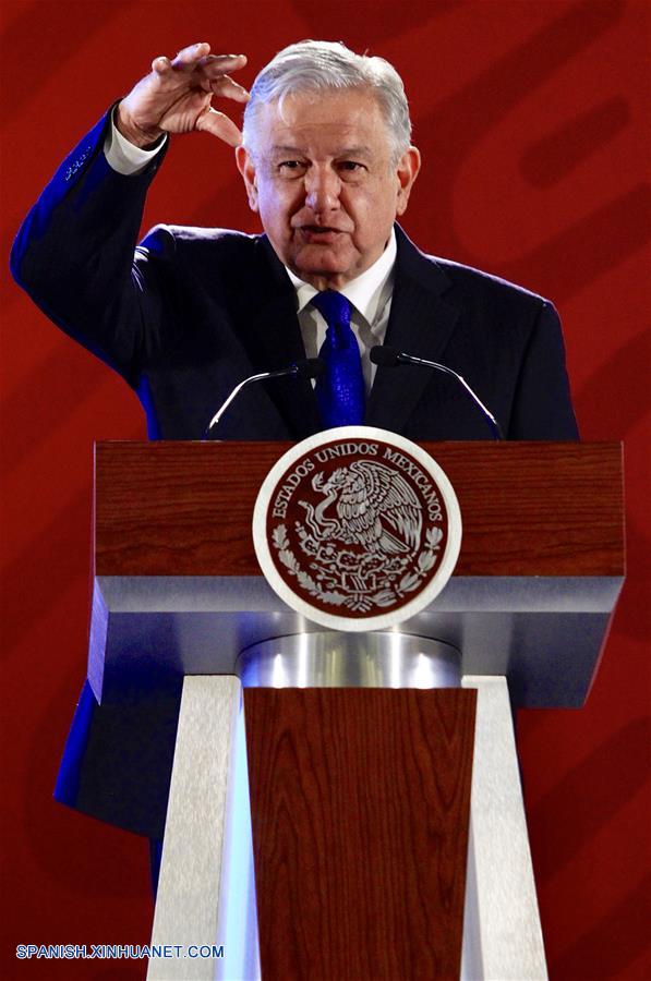 CIUDAD DE MEXICO, febrero 12, 2019 (Xinhua) -- El presidente de México, Andrés Manuel López Obrador, participa en una conferencia de prensa matutina llevada a cabo en Palacio Nacional, en la Ciudad de México, capital de México, el 12 de febrero de 2019. El presidente de México, Andrés Manuel López Obrador, se?aló el martes que algunas empresas extranjeras han incumplido contratos "jugosísimos" (millonarios) otorgados en administraciones pasadas. Aclaró que su gobierno está a favor de la participación del sector privado, nacional y extranjero, pero en contra de "la corrupción, el atraco y el saqueo". En conferencia de prensa, el mandatario mexicano pidió a los gobiernos extranjeros que "avalen la actitud moral de sus empresas". (Xinhua/Str)