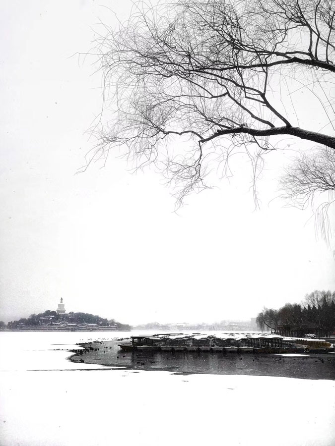 El parque Beihai cubierto de nieve en Beijing el 12 de febrero de 2019. [Foto de Johnny para chinadaily.com.cn]