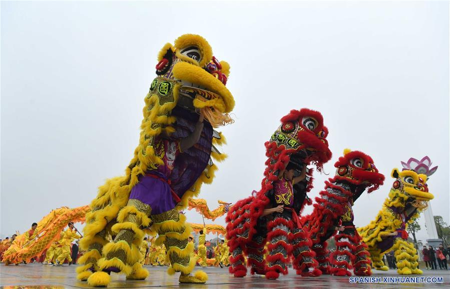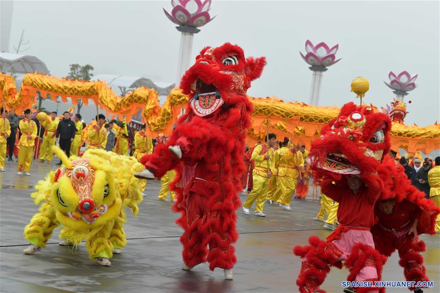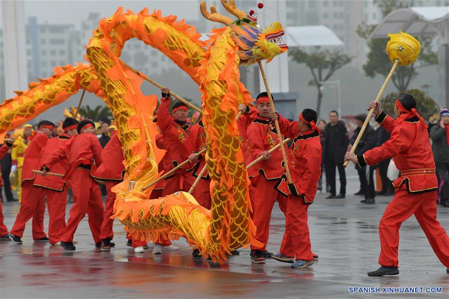 JIANGXI, febrero 12, 2019 (Xinhua) -- Ejecutantes interpretan la danza del dragón en el octavo día de A?o Nuevo Lunar chino, en el condado de Nanchang de la ciudad de Nanchang, provincia de Jiangxi, en el este de China, el 12 de febrero de 2019. Los equipos de las danzas del león y el dragón de las localidades ofrecen actuaciones para celebrar el a?o nuevo. (Xinhua/Peng Zhaozhi)