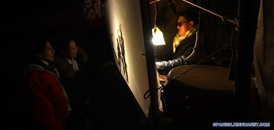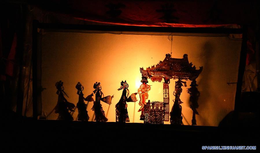 GANSU, febrero 13, 2019 (Xinhua) -- Imagen del 12 de febrero de 2019 de un artista popular realizando un espectáculo de títeres de sombra, en la villa de Cuijiahe del condado de Weiyuan, en la ciudad de Dingxi, provincia de Gansu, en el noroeste de China. Las personas disfrutan de múltiples actividades culturales en Cuijiahe llevadas a cabo para celebrar el A?o Nuevo del calendario lunar chino. (Xinhua/Wang Gang)