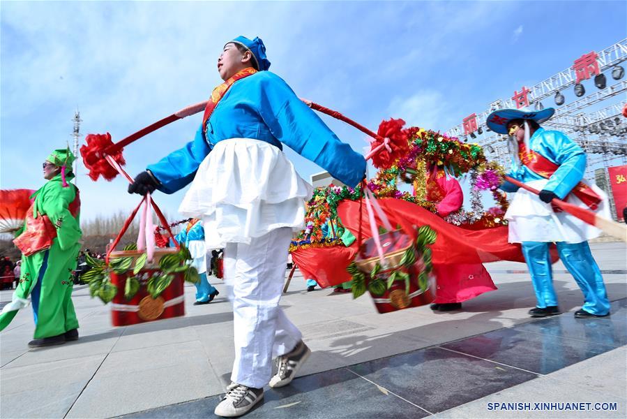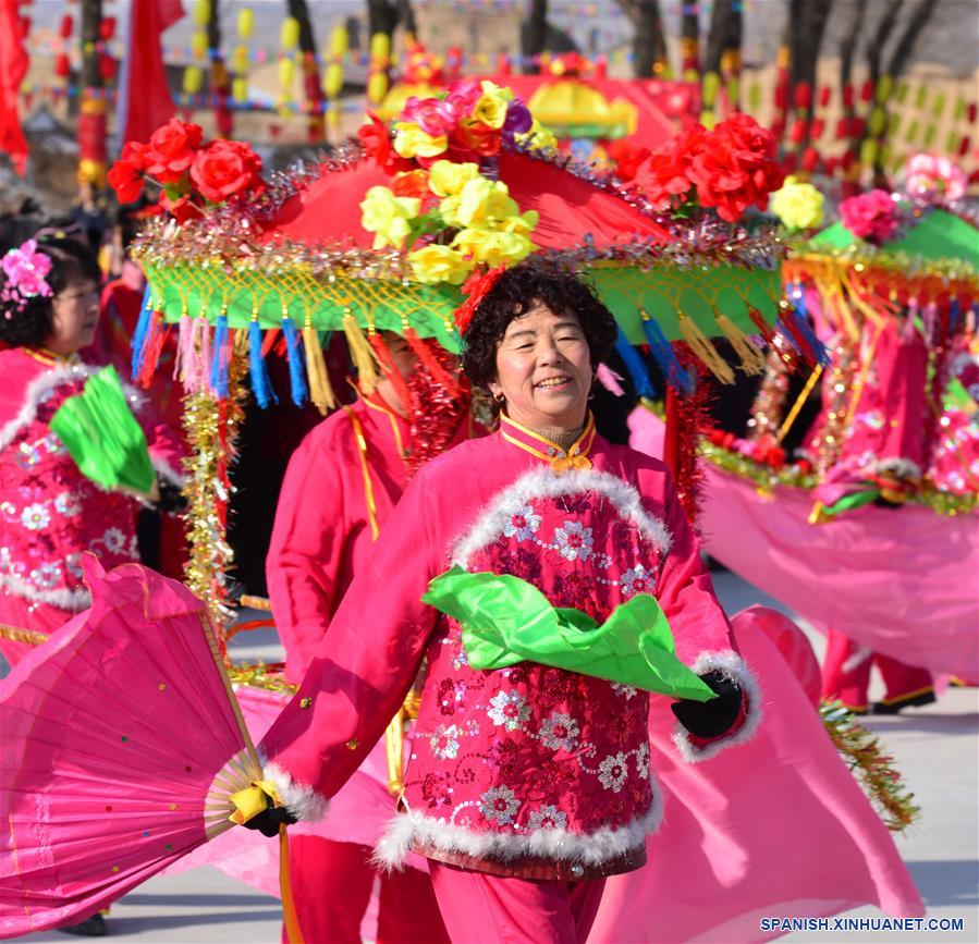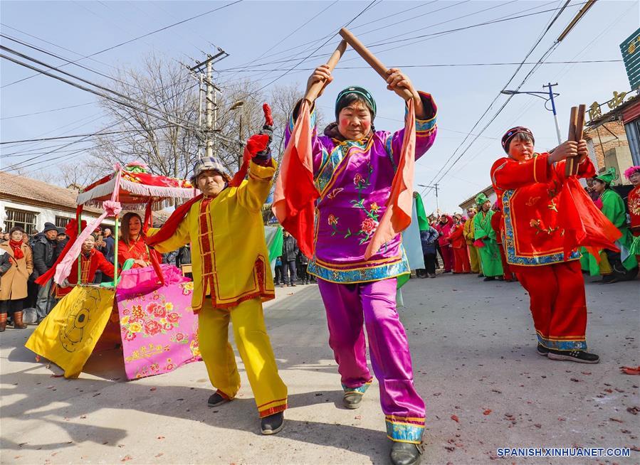HEBEI, febrero 13, 2019 (Xinhua) -- Ejecutantes presentan una danza folclórica, en la ciudad de Tangshan, provincia de Hebei, en el norte de China, el 13 de febrero de 2019. (Xinhua/Liu Mancang)