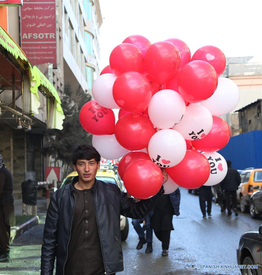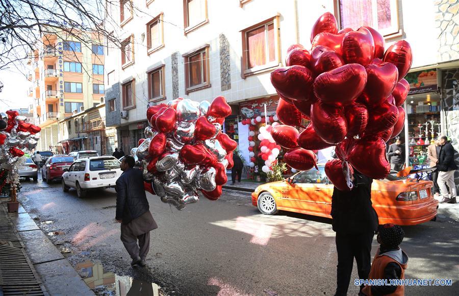 KABUL, febrero 14, 2019 (Xinhua) -- Afganos venden globos en forma de corazón en el Día de San Valentín, en Kabul, capital de Afganistán, el 14 de febrero de 2019. (Xinhua/Rahmat Alizadah)