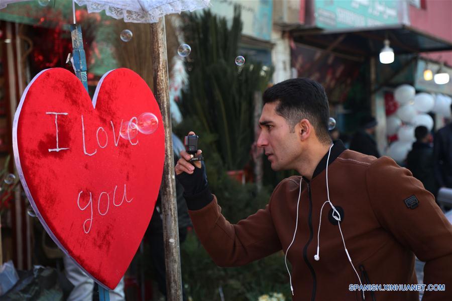 KABUL, febrero 14, 2019 (Xinhua) -- Un afgano captura un video en el Día de San Valentín, en Kabul, capital de Afganistán, el 14 de febrero de 2019. (Xinhua/Rahmat Alizadah)
