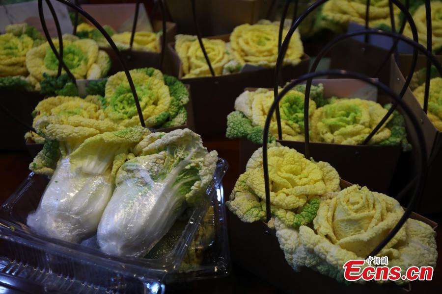La foto muestra varias rosas con forma de col china, creadas por el profesor Hou Xilin en la Facultad de Horticultura de la Universidad Agrícola de Nanjing, el 13 de febrero de 2019. Varios estudiantes han creado una nueva empresa para comercializar en línea y fuera de línea la col china, que es más peque?a en tama?o, tiene forma de rosa y sabe mejor. (Foto: China News Service / Yang Bo)