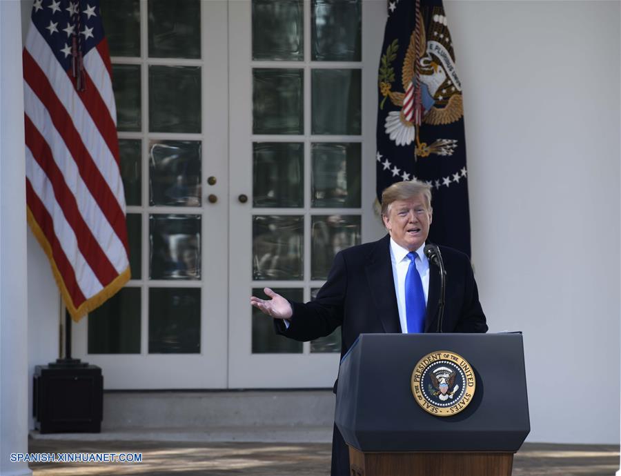 WASHINGTON D.C, febrero 15, 2019 (Xinhua) -- El presidente de Estados Unidos, Donald Trump, emite un anuncio en el Jardín de las Rosas de la Casa Blanca, en Washington D.C., Estados Unidos, el 15 de febrero de 2019. El presidente de Estados Unidos, Donald Trump, anunció el viernes que decretará una emergencia nacional para ampliar el muro fronterizo entre Estados Unidos y México e impulsar su emblemática promesa de campa?a. (Xinhua/Hu Yousong)