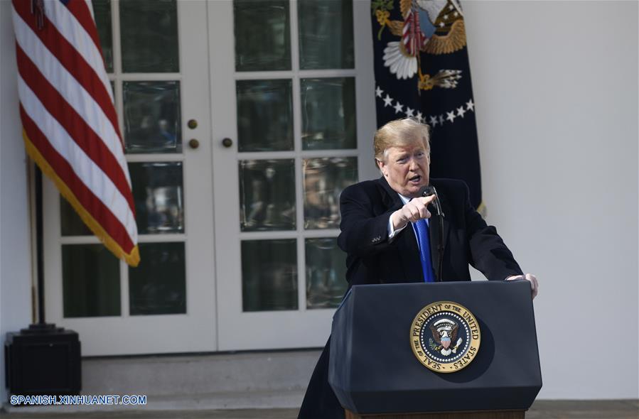 WASHINGTON D.C, febrero 15, 2019 (Xinhua) -- El presidente de Estados Unidos, Donald Trump, emite un anuncio en el Jardín de las Rosas de la Casa Blanca, en Washington D.C., Estados Unidos, el 15 de febrero de 2019. El presidente de Estados Unidos, Donald Trump, anunció el viernes que decretará una emergencia nacional para ampliar el muro fronterizo entre Estados Unidos y México e impulsar su emblemática promesa de campa?a. (Xinhua/Hu Yousong)