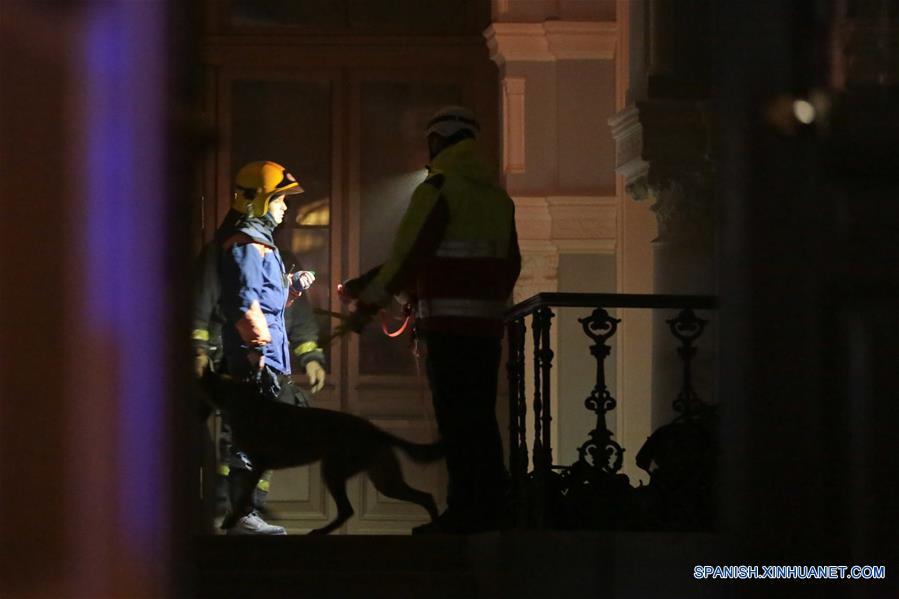 Rescatistas trabajan en el lugar donde se registró el colapso parcial de un edificio universitario, en San Petersburgo, Rusia, el 16 de febrero de 2019. No se reportaron víctimas atrapadas bajo los escombros de un edificio universitario que colapsó el sábado parcialmente en la ciudad rusa de San Petersburgo, informó el Ministerio de Emergencias de Rusia. (Xinhua/Irina Motina)