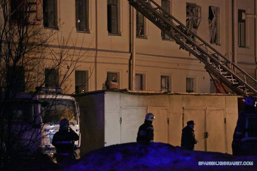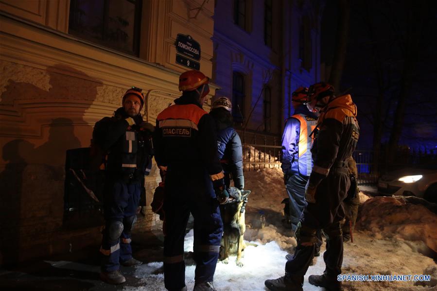 Rescatistas trabajan en el lugar donde se registró el colapso parcial de un edificio universitario, en San Petersburgo, Rusia, el 16 de febrero de 2019. No se reportaron víctimas atrapadas bajo los escombros de un edificio universitario que colapsó el sábado parcialmente en la ciudad rusa de San Petersburgo, informó el Ministerio de Emergencias de Rusia. (Xinhua/Irina Motina)
