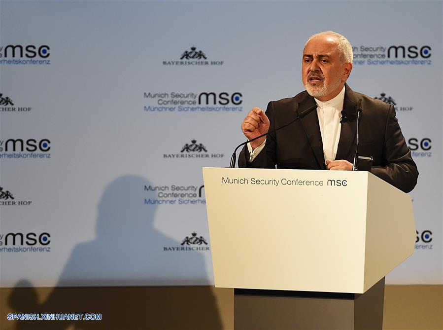 MUNICH, febrero 17, 2019 (Xinhua) -- El ministro de Asuntos Exteriores iraní, Mohammad Javad Zarif, pronuncia un discurso durante la 55 Conferencia de Seguridad de Múnich (CSM), en Múnich, Alemania, el 17 de febrero de 2019. Mohammad Javad Zarif instó el domingo a las potencias europeas a hacer más para salvar el acuerdo nuclear con la república islámica y acusó a Washington de tener "una obsesión" con Irán. (Xinhua/Lu Yang)