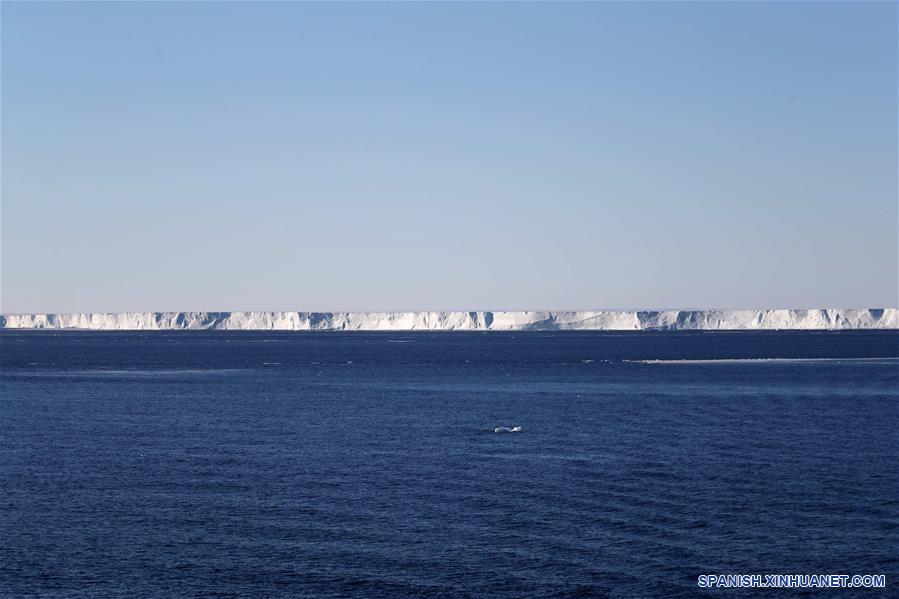 ABORDO DEL XUELONG, febrero 17, 2019 (Xinhua) -- Imagen del 15 de febrero de 2019, del borde de la Plataforma de Hielo Oeste en la Antártida. El rompehielos de investigación Xuelong de China, con sus 126 tripulantes abordo de la 35 misión de investigación de Antártica, partió el jueves hora local de la Estación Zhongshan para su viaje de regreso a China. Se espera que llegue a Shanghai a mediados de marzo. (Xinhua/Liu Shiping)