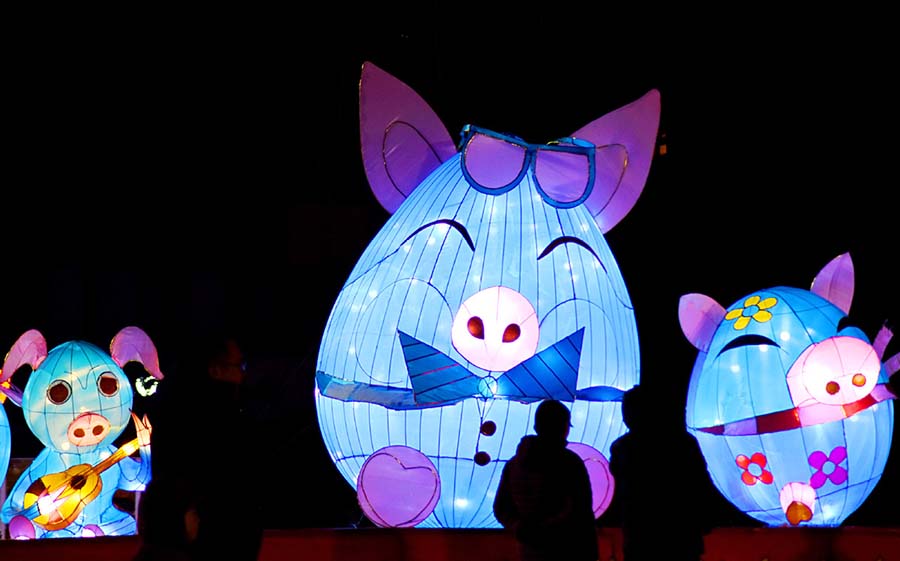 La gente contempla las linternas en una plaza en el condado Yiyuan de Zibo, provincia de Shandong, este de China, el 15 de febrero de 2019. El Festival de las Linternas se celebra el 19 de febrero este a?o. [Foto / Xinhua]