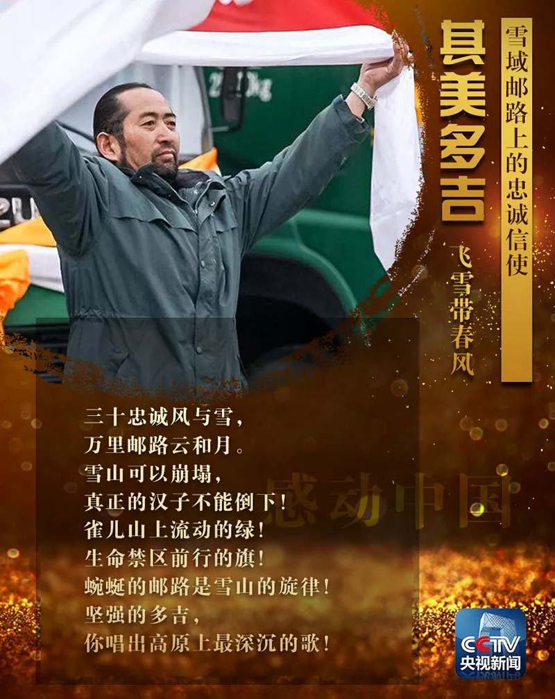 Qimeiduoji ha estado trabajando durante 29 a?os como cartero en áreas con una elevación promedio de más de 3.500 metros en la provincia de Sichuan, suroeste de China. A lo largo de los a?os, su camioneta de correo nunca se ha visto involucrada en un accidente, y la duración total de sus viajes a lo largo de su profesión es equivalente a 35 veces el perímetro del ecuador.