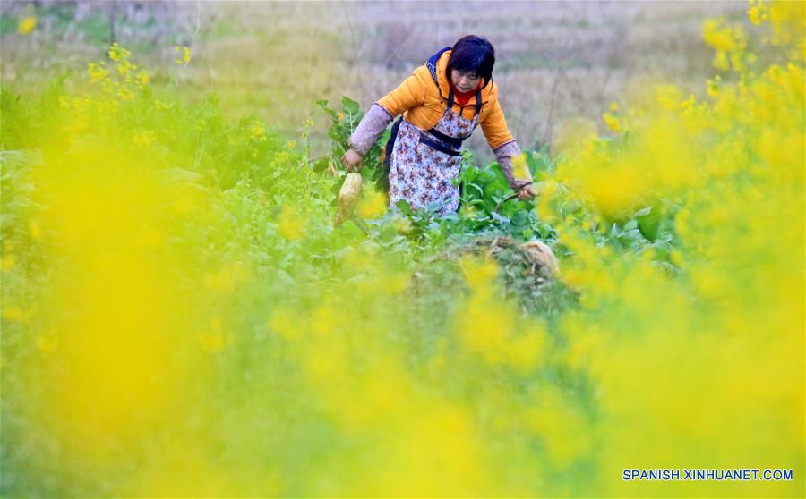 JIANGXI, febrero 25, 2019 (Xinhua) -- Una agricultora trabaja en un sembradío de vegetales, en el condado de Yongfeng de la ciudad de Ji'an, en la provincia de Jiangxi, en el este de China, el 25 de febrero de 2019. Los granjeros se encuentran ocupados con las labores agrícolas durante el inicio de la primavera. (Xinhua/Liu Haojun)