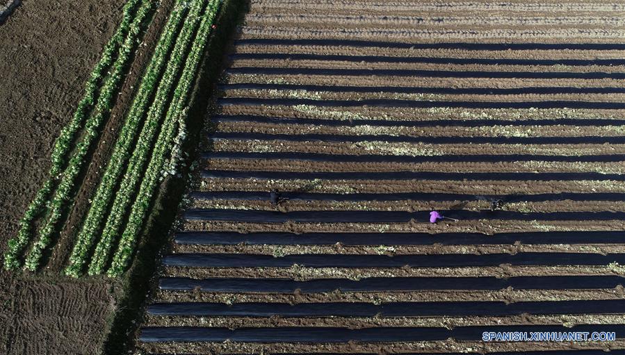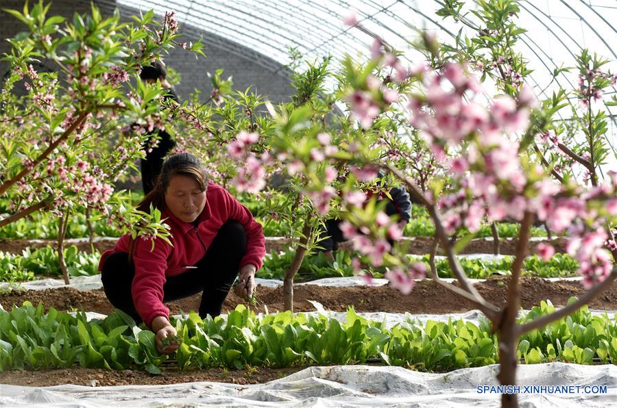 ZHANGJIAKOU, febrero 25, 2019 (Xinhua) -- Agricultores trabajan en un invernadero, en el distrito de Xuanhua de la ciudad de Zhangjiakou, en la provincia de Hebei, en el norte de China, el 25 de febrero de 2019. Los granjeros se encuentran ocupados con las labores agrícolas durante el inicio de la primavera. (Xinhua/Chen Xiaodong)