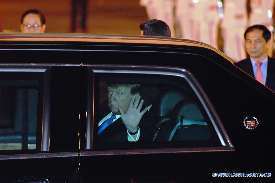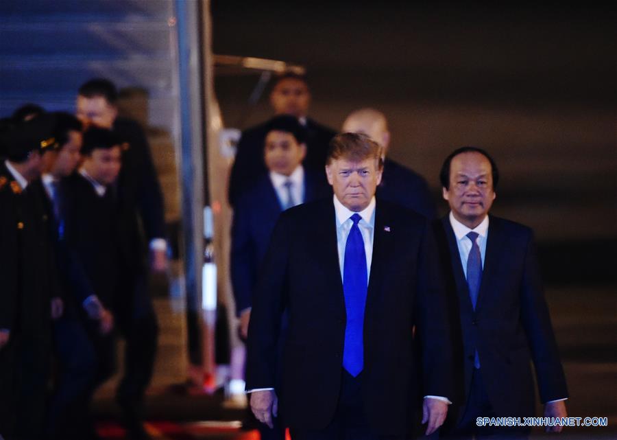 HANOI, 26 feb (Xinhua) -- El presidente de Estados Unidos, Donald Trump, llegó este martes en la noche al Aeropuerto Internacional de Noi Bai de la capital de Vietnam, Hanoi, para sostener su segunda cumbre con el máximo líder de la República Popular Democrática de Corea (RPDC), Kim Jong Un.