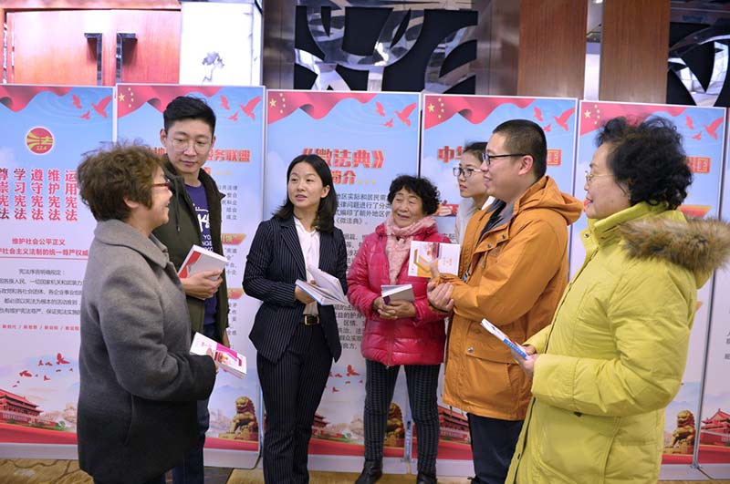 El 3 de diciembre de 2018, después del final de un curso informativo sobre la Conferencia Constitucional, organizado por la comunidad de la calle Chaowai, distrito Chaoyang de Beijing, los residentes consultaron a Chu Hongwei, una abogada, sobre sus problemas legales. (Foto: Xu Wei/Diario del Pueblo)
