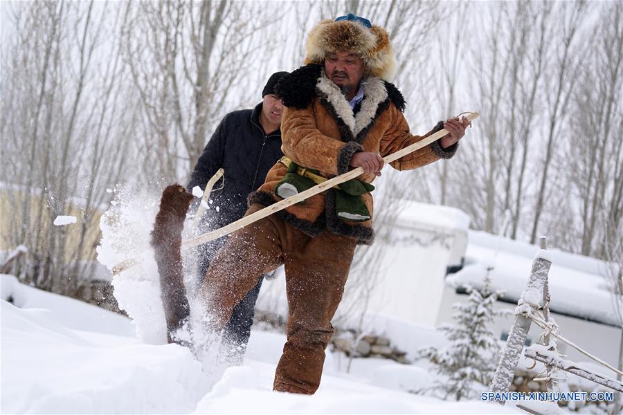 Imagen del 20 de diciembre de 2018 de Silanbek Sahshi (d) y su hijo Huanshbek Silanbek (i) probando los snowboards de pelaje recién fabricados, en Altay, en la Región Autónoma Uygur de Xinjiang, en el noroeste de China. Silanbek Sahshi, un hombre de 65 a?os de edad del grupo étnico kazajo, es un heredero de la fabricación tradicional de snowboards de pelaje. Como heredero de cuarta generación del oficio de su familia, Silanbek se ha dedicado a la artesanía durante casi 50 a?os. Los snowboards de pelaje son hechos de madera de pino o abedul y cubiertos con pelaje de caballo. El pelaje de caballo puede proporcionar fricción cuando los esquiadores van cuesta arriba, ya que el granulado pelaje de caballo proporciona fricción para ayudar a escalar monta?as, mientras que también ayuda a deslizarse por la monta?a sin problemas. A Silanbek le toma aproximadamente medio mes hacer un par de tablas de snowboard a mano. En el presente, él está ense?ando sus habilidades a su hijo Huanshbek Silanbek. Una antigua pintura rupestre que mostraba a personas que cazaban con esquís, que data de hace más de 12,000 a?os, fue encontrada en la prefectura de Altay. Este descubrimiento ha proporcionado evidencia sólida de la larga tradición y cultura del esquí en el área. Hasta ahora, se han construido tres campos de esquí, donde la temporada de nieve dura más de medio a?o, atrayendo a turistas nacionales y del extranjero. Los snowboards de pelaje, que han evolucionado a partir de las herramientas de viaje para la caza en equipos deportivos, han enriquecido los proyectos de turismo de invierno. El vigoroso desarrollo de los deportes de invierno ha hecho que la artesanía antigua "vuelva a la vida". (Xinhua/Han Yuqing)